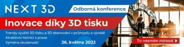 Pokud vás zajímá, kde už 3D tisk slouží v české praxi a co konkrétního přináší, určitě si nenechte ujít zajímavé řečníky přímo z průmyslu a výroby na odborné konferenci NEXT 3D: Investice díky 3D tisku, která se za partnerství Národního centra Průmyslu 4.0 uskuteční na konci května. Více na www.next3d.cz.