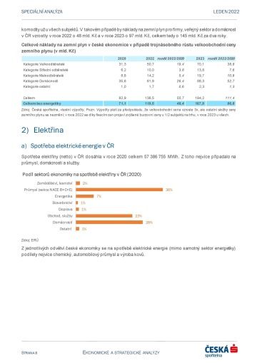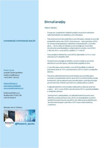 Pokud by v této výši zůstaly i nadále, tak by se podle našich výpočtů celkové náklady na tyto energie pro tuzemské domácnosti, podnikatelský a veřejný sektor zvýšily v roce 2022 o 89 mld. Kč a v roce 2023 o dalších 177 mld. Kč. Toto navýšení nákladů by v roce 2022 odpovídalo 1,4 % a v roce 2023 již 2,6 % českého HDP.