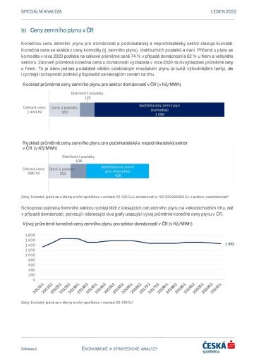 Konečná cena energie se skládá z ceny komodity (tj. samotné elektřiny či zemního plynu), distribučních poplatků a daní. U zemního plynu se komodita v roce 2020 podílela na celkové průměrné ceně ze 74 % u domácností a z 62 % u firem a veřejného sektoru. Pokud by velkoobchodní (burzovní) složka ceny zemního plynu vzrostla na trojnásobek hodnot z jara 2021 (a ostatní složky zůstaly konstantní), tak by celková cena zemního plynu v průměru stoupla pro domácnosti 2,5krát a pro firemní a veřejný sektor 2,2krát.