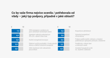 Podpora firem od státu a očekávání spojená s nástupem nové vlády je v současné situaci stále aktuálnější téma. Od vlády průmysl nejvíce čeká větší podporu technických oborů, vyjednání příznivých a reálných podmínek pro ČR v oblasti Green Deal, kvalitní energetickou koncepci, efektivní využití prostředků z Fondu národní obnovy a větší otevřenost vůči zahraničním pracovníkům.