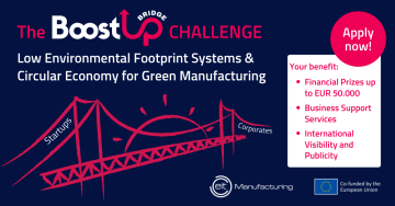 Třetí série výzev BoostUp! BRIDGE se zaměřuje na vybudování „mostů“ mezi technologiemi startupů a jejich implementaci při řešení průmyslových výzev firemních partnerů. Několik společností identifikovalo výzvy, které hledají řešení pod vlajkovou lodí EIT Manufacturing v oblasti systémů s nízkou ekologickou stopou a cirkulární ekonomiky pro zelenou výrobu.