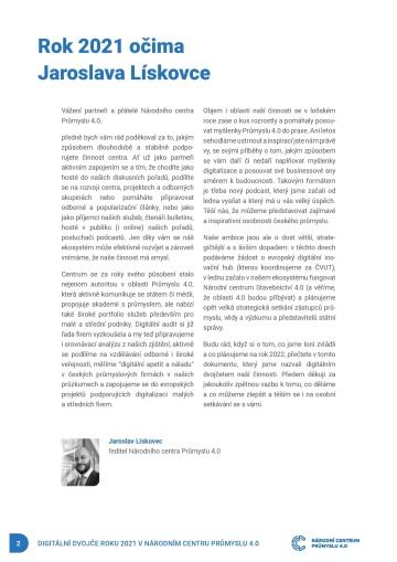 Budu rád, když si o tom, co jsme loni zvládli a co plánujeme na rok 2022, přečtete v tomto dokumentu, který jsme nazvali digitálním dvojčetem naší činnosti. Předem děkuji za jakoukoliv zpětnou vazbu k tomu, co děláme a co můžeme zlepšit a těším se i na osobní setkávání se s vámi.