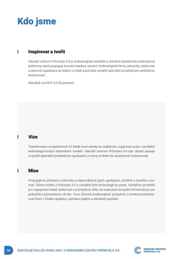 Vážení partneři a přátelé Národního centra Průmyslu 4.0, předně bych vám rád poděkoval za to, jakým způsobem dlouhodobě a stabilně podporujete činnost centra. Ať už jako partneři aktivním zapojením se a tím, že chodíte jako hosté do našich diskusních pořadů, podílíte se na rozvoji centra, projektech a odborných skupinách nebo pomáháte připravovat odborné a popularizační články, nebo jako jako příjemci našich služeb, čtenáři bulletinu, hosté v publiku (i online) našich pořadů, posluchači podcastů. Jen díky vám se náš ekosystém může efektivně rozvíjet a zároveň vnímáme, že naše činnost má smysl.