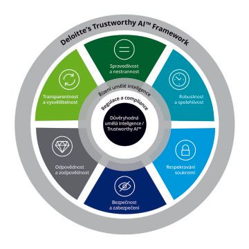 Prvním krokem k rozšířenému využívání důvěryhodné AI je shoda na etických zásadách, které jsou cenné pro strategii podniku, a na nástrojích, které jsou k jejímu prosazování zavedeny. Jednou z možností jak zajistit, že strategie zavedení AI bude úspěšná, je Deloitte Trustworthy AI™ framework. Tento přístup definuje šest faktorů, pomocí nichž lze vyhodnotit chování nasazované AI. Podívejme se nyní podrobněji, o jaké faktory se jedná: