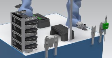 Naše robotická buňka je ukázkou flexibilní modulární výroby v rámci autonomní továrny, kterou centrum RICAIP připravuje ve spolupráci se společností DEL pro společnost ZŤS Výskum a Vývoj.