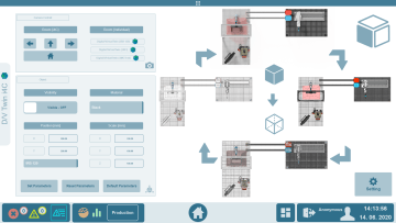 Robotická buňka I4C využívá, krom jiných, vlastní nástroj pro ovládání a programovaní digitálních dvojčat, a to nástroj Unity3D. V tomto prostředí je rovněž tvořena rozšířená i virtuální realita. K výhodám této koncepce patří i velmi pokročila fyzikální simulace zprostředkovaná prostřednictvím NVIDIA PhysX. Digitální dvojče obsahuje jak ovládání reálného zařízení, tak ovládaní simulace jednotlivých zařízení, kamery, přesouvaní objektů, detekci kolizí, apod.