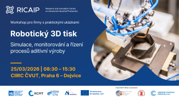 Zveme vás na odborný workshop s podtitulem Simulace, monitorování a řízení procesů aditivní výroby, zaměřený na na pokročilé využití průmyslových robotů v aditivní výrobě kovů, který proběhne 25. března v RICAIP Testbedu Praha na CIIRC ČVUT. Program nabídne technické prezentace i praktické ukázky procesů LMD, WAAM a PEM, včetně simulací, monitoringu a řízení kvality přímo u funkčních robotických systémů.