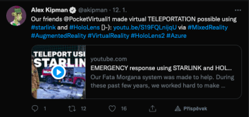 O systém Fata Morgana zároveň projevily vážný zájem i záchranné složky, a tak se na konci roku 2021 rozběhly testy využití Starlinku v akci - mimo jiné i s pražskými hasiči. Během testu, který můžete vidět na videu níže, fungoval jeden Starlink jako vysílač dat z HoloLens brýlí a druhý jako přijímač pro velín. Vedoucí zásahu tak měli skvělé povědomí o místě zásahu a v reálném čase radili záchranářům, jak postupovat.