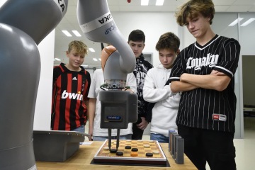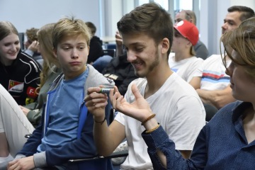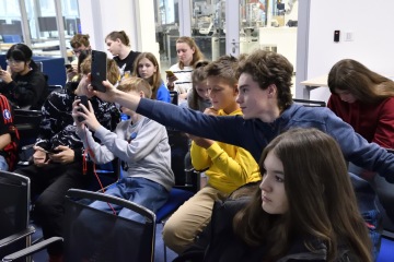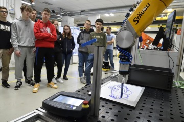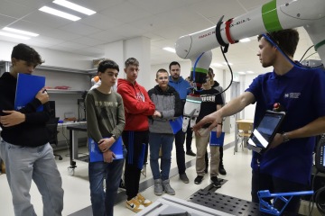 Unikátní propojení na technologickou infrastrukturu RICAIP Testbedu pro Průmysl 4.0 dodává přednáškám praktickou dimenzi. Vše, o čem slyšeli, si zde mohou žáci v druhé půlce programu otestovat a vyzkoušet: třeba kolaborativní robotické pracoviště pro spolupráci člověka a robota při montáži, kde je robot schopen reagovat na okamžité potřeby obsluhy, nebo robotickou buňku, která autonomně rozebírá vysloužilé autobaterie a připravuje je na recyklaci. Pozornost vzbudila i flexibilní výrobní linka, kde zásobování díly pro výrobu probíhá prostřednictvím automaticky řízených vozíků (tzv. AGV). Ve spodní části testbedu, tzv. těžkém, pak studenti naleznou nejen roboty obry, které se využívají k obrábění, ale také technologie pro 3D tisk nebo využití laseru.