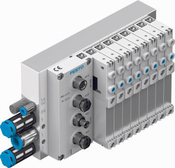 Sortiment periferií je silnou stránkou CPX-AP-I. Samozřejmě obsahuje nejrůznější moduly s binárními nebo analogovými vstupy či výstupy, najdete zde ale i jednotky master pro IO-Link, díky čemuž lze velmi elegantně a snadno připojit nejrůznější čidla (obr. 2., 3. a 4). Významnou je schopnost přímého připojení ventilových terminálů, tedy bezprostředního ovládání pneumatických pohonů (obr. 5). Pokud jde o pohony elektrické, menší servopohony Festo lze ovládat po IO-Link, tedy také snadno.