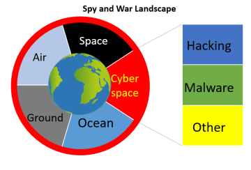Když se podíváme na kybernetický prostor coby místo možných konfliktů a antagonistických aktivit, pak už se dostáváme do oblasti válečnictví a kriminality jako takové. Jak už jsem říkal, jde o virtuální prostředí. Kybernetický prostor vznikl ve stejnou chvíli, kdy vznikl internet a vše se propojilo digitálními komunikacemi a jak je vidět na obrázku, kyberprostor je všude.