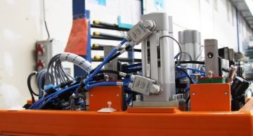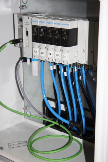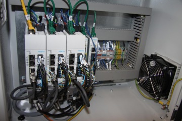 Servopohony se polohují v osách x a y, navíc umožňují natáčet kartridže. Parametry jejich funkce, jako je rychlost pohybu a přítlačná síla, lze jednoduše měnit. Kromě nich pak jsou součástí stolu ještě dva ovladače krokových motorů CMMT-ST. Ty vytvářejí nastavitelné dorazy pro rozdílné velikosti skel. Opět jednoduchým přenastavením lze snadno a rychle upravovat parametry zařízení podle právě požadovaného typu skla. Použití krokových motorů s odměřováním je v tomto případě výhodné proto, že mají jednodušší konstrukci než servopohony. Pro dané použití, kdy se přenastavení stolu neprovádí často, tak naprosto vyhovují.
