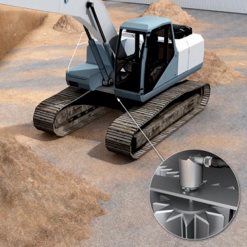 Aby bylo zajištěno úplné spuštění ložné plochy sklápěče, je nutné sledovat koncovou polohu sklápěcí korby. Indukční senzory speciálně upravené pro požadavky stavebních strojů mají vysokou elektromagnetickou kompatibilitu, teplotní odolnost a odolnost proti nárazům a vibracím. Navíc mohou mít i schválení typu E1 pro provoz vozidel na pozemních komunikacích, což usnadní celkovou certifikaci vozidla. Takové snímače lze použít také k detekci polohy pedálu v kabině řidiče.