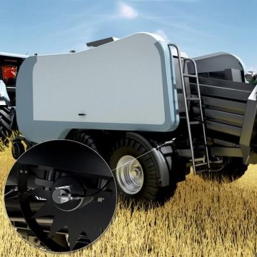 Kompaktní absolutní enkodér dokáže určit délku hranatých balíku u mobilních lisů. Snímač zjišťuje absolutní polohu měřicího kolečka, určuje rychlost posuvu, a tím i délku balíku. Díky své odolnosti proti prachu a spolehlivému, plně magnetickému snímači je pro tento úkol obzvláště vhodný.