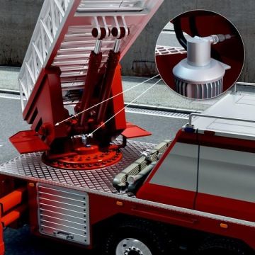 Perfektní využití mají enkodéry také u bagrů s otočnou kabinou, jeřábů nebo hasičských vozidel s natáčecím žebříkem a hasicí tryskou. Enkodér je nainstalovaný na otočné hřídeli pohyblivého zařízení a dokáže tak předat zpětnou vazbu o absolutní pozici pohyblivého ramene stroje. Obsluha tak vždy ví, v jaké pozici se právě toto rameno nachází.