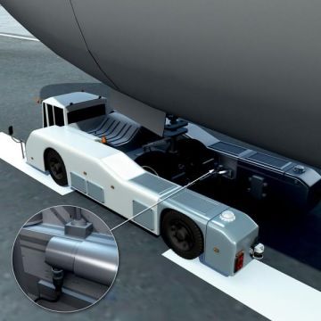 Enkodéry se používají i u tahačů letadel. U nich je důležité zkontrolovat přesnou pozici klapky, která zajišťuje přední kolo letadla v tahači. K tomuto účelu se typicky používá jednootáčková verze absolutního enkodéru. Díky robustní a spolehlivé technologii plně magnetického snímače jej lze použít i v náročných okolních podmínkách. Díky malým rozměrům lze snímač použít i při nedostatku místa.