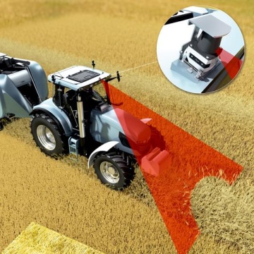 Senzorový systém, který je založen na laserovém 2D skeneru, je namontován na střeše kombajnu, určuje polohu a výškový profil materiálu. Systém tyto informace využívá k výpočtu cílové trajektorie a odesílá je po CAN sběrnici. Po této dráze může být sklízecí mlátička automaticky vedena. Kromě toho senzor průběžně zjišťuje objem materiálu a tuto informaci rovněž odesílá po CAN sběrnici. To umožňuje automatické řízení rychlosti, aby sklízecí mlátička mohla pracovat s optimálním výkonem.
