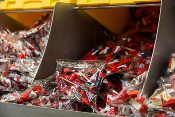 Již roztříděné a zabalené kostičky Lega připravené k další manipulaci.