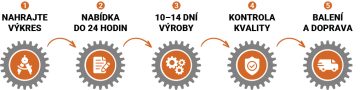 Zákazníci mají přehled o dílech i objednávkách a mohou vše kontrolovat, zpětná dohledatelnost v historii jednotlivých kroků pomáhá s vývojem zakázky. Rychlou výrobou, následnou kontrolou kvality a dopravou až k zákazníkovi zajišťujeme kompletní servis.