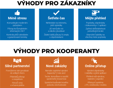 Neustále rozšiřujeme síť spolupracujících výrobních firem a nabízených technologií a díky tomu můžeme dodávat hotové díly flexibilně bez nedostatku výrobních kapacit či surovin. Firmy, které mají zájem stát se našimi kooperanty, se mohou do systému zaregistrovat zdarma a nabízet volné kapacity svých strojů a služeb. Aplikace s online přístupem nabízí přehled nad výrobou, balením i expedicí a je dostupná přes počítač, telefon i tablet. Do budoucna plánujeme rozšířit naše služby i do zahraničí.