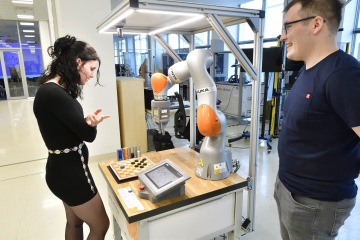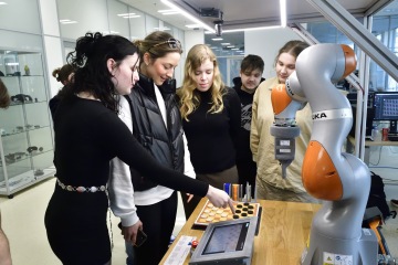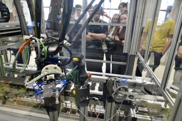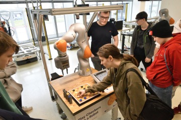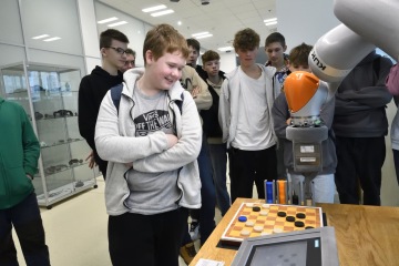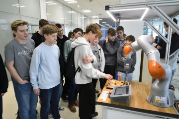 Druhá část programu je praktická – studenti si tak mohou vyzkoušet vše, o čem slyšeli, v praxi. V rámci prohlídky RICAIP Testbedu Praha, který se nachází na dvou podlažích Českého institutu informatiky, robotiky a kybernetiky ČVUT studenti navštívili tzv. „lehký“ Testbed, kde si prohlédli 5G komunikační modul, který pro zpracování obrazu využívá algoritmy AI či metrologickou laboratoř, plně vybavenou pro optické i hmatové měření. Dále si také vyzkoušeli hraní deskových her s kolaborativními roboty. Jako další navštívili i spodní „těžkou“ část, kde si mohli vyzkoušet psaní textu robotem a seznámili se s ovládáním pohybů robotu.