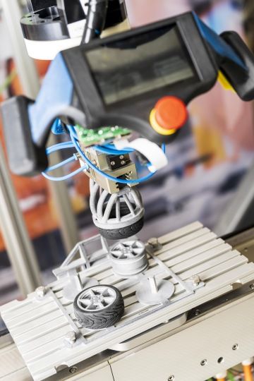 Delta robot se musí naučit řadu operací, které jsou pro něj složité, například nasadit pneumatiku na kolo modelového autíčka. Pro robot umístěný v testbedu vytiskli vědci na 3D tiskárně speciální chapadlo, čili „ruce“, kterými robot dokáže pneumatiku správně uchopit a založit. V případě, kdy přijde požadavek na nasazení jiného typu pneumatiky, než na jaký je chapadlo přizpůsobené, není problém flexibilně na 3D tiskárně vytisknout nové „ruce“ a proces může pokračovat.