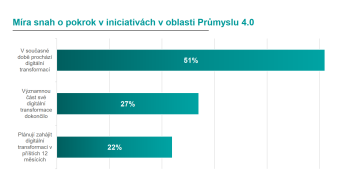 Míru snah o pokrok v iniciativách v oblasti Průmyslu 4.0 dokládá nedávná studie, kterou si společnost Siemens nechala vypracovat u agentury Forrester Consulting a v níž oslovila více než 400 osob s rozhodovacími pravomocemi v oblasti IT a provozu: 51 % respondentů uvedlo, že v současné době prochází digitální transformací, 22 % plánují zahájit digitální transformaci v příštích 12 měsících, zatímco pouze 27 % odpovědělo, že již významnou část své digitální transformace dokončilo.