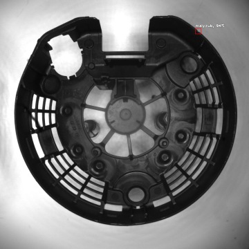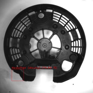 Detekce musí probíhat v okamžiku, kdy robot nese výlisky. Na dopravník mohou jít pouze OK kusy. NOK kusy jsou vyhozeny do popelnice. Vyskytující se vady na vnější hraně pláště mají obdobný charakter jako chtěné výstupky výrobku. Velikost výstupků a nedolitků je 1 mm x 1 mm. Vzhledem k celkové velikosti výrobku se jedná o problematicky detekovatelnou část a obě části jsou velmi složitě separovatelné.