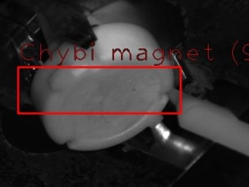 Ukázky detekce vad na výrobku o průměru 10 mm, snímaném ze vzdálenosti 1,2 m v IR spektru