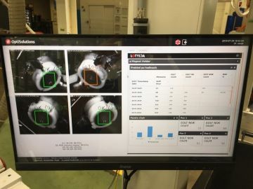 Na lis byly instalovány kamery pracující v IR spektru pro minimalizaci vlivu slunečního záření ze světlíku. Každé hnízdo má vlastní kameru, která jej snímá ze vzdálenosti 1,2 m. Ty jsou napojeny na vyhodnocovací počítač komunikující s řídicím systémem stroje přes PLC. Nasnímané výstupy byly rozděleny na 4 třídy {OK, otočený magnet, prasklý magnet, chybějící magnet}.