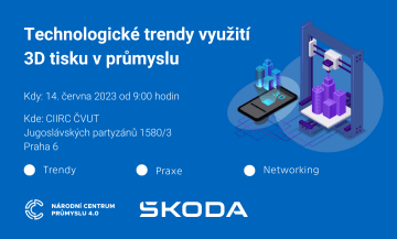 Představení aktuálních trendů v oblasti 3D tiskových technologií na konkrétních příkladech s ohledem na jejich využití v průmyslové praxi. Prohlídky Centra aditivní výroby CIIRC ČVUT.