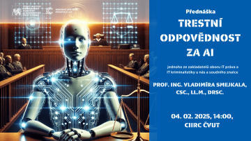 Anotace přednášky: Přednáška se zaměří na otázky trestní odpovědnosti spojené s umělou inteligencí (AI), a to jak v kontextu informační kriminality (nakládání s daty), tak fyzické kriminality zasahující do reálného světa. Diskutovány budou skutkové podstaty trestných činů, příklady z praxe a možné budoucí trendy.